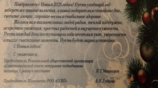 Поздравление с Новым годом Севастопольского Совета ветеранов-подводников