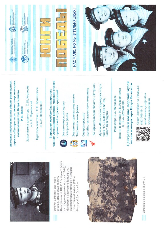 The exhibition is about boys aged 13-16.During the Great Patriotic War, they studied at the Solovetsky and Kronstadt schools of young sailors (jungies), and then went to fight for their Homeland.