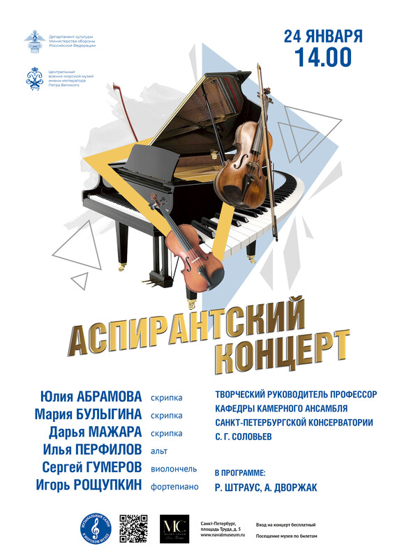 24 января в 14 часов приглашаем вас в Центральный военно-морской музей на музыкальную программу «Аспирантский концерт».