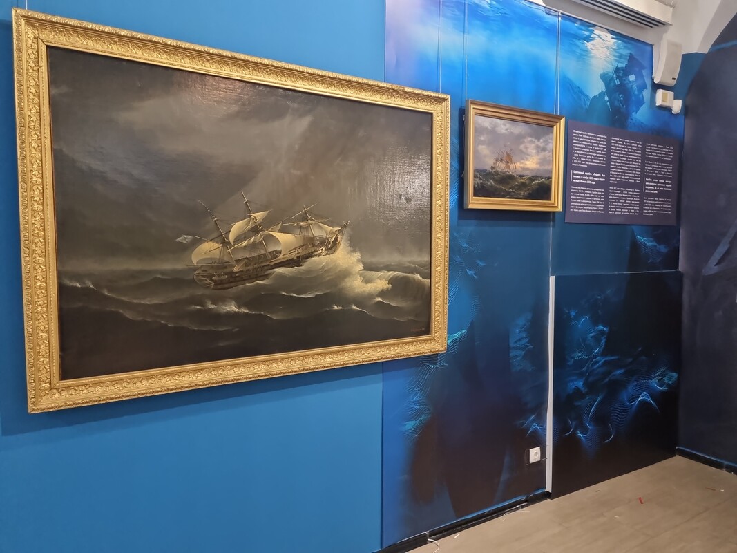 Передать это половодье чувств призваны все 52 предмета, составляющих экспозицию новой выставки: модели кораблей, картины Айвазовского и современных живописцев, инсталляции из якорей, пушек и канатов, представляющие морское дно, а также видео и фотодокументы, рассказывающие о работе экспедиции, обнаружившей «Лефорта».
