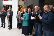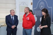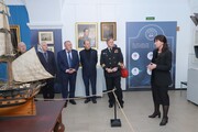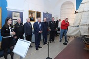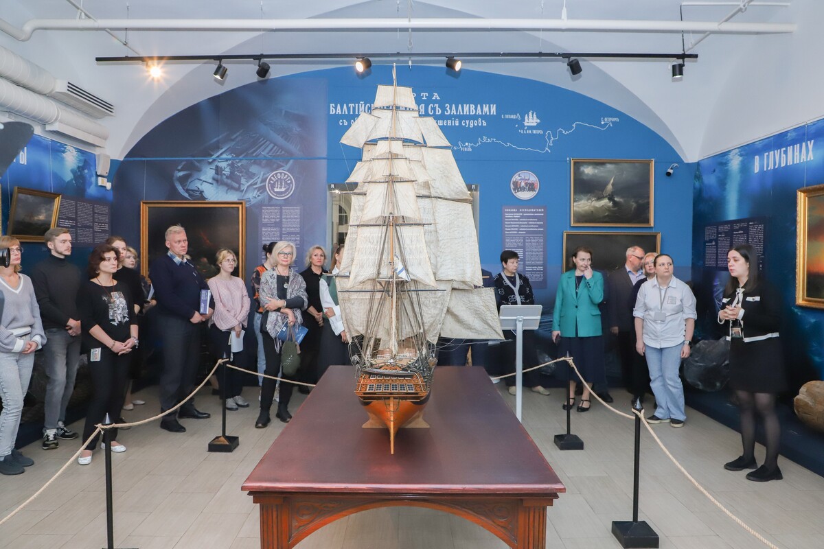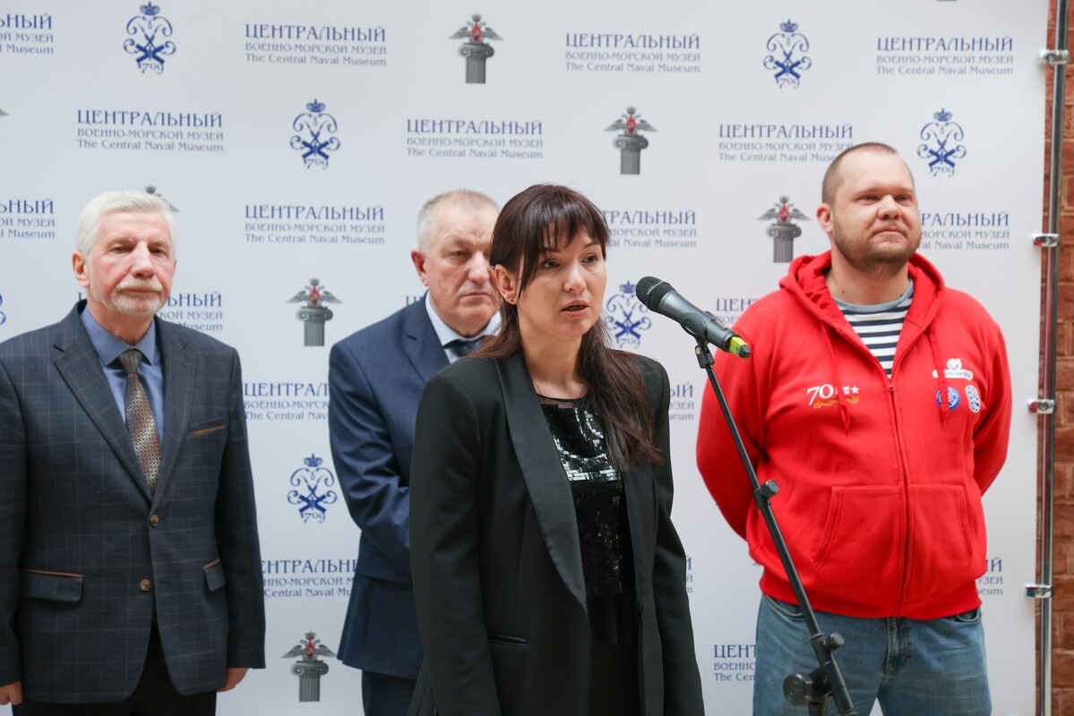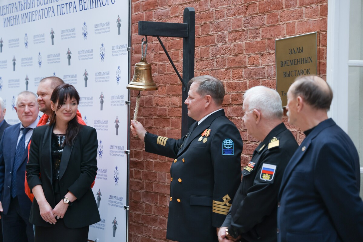 Коллеге Михаила по подводным исследованиям – Денису Осипову было предоставлено почетное право ударить в корабельный колокол в ознаменование начала работы выставки. Вслед за этим куратор выставки, начальник отдела фондов Центрального военно-морского музея Мария Олейник пригласила участников церемонии на экскурсию по новой экспозиции.