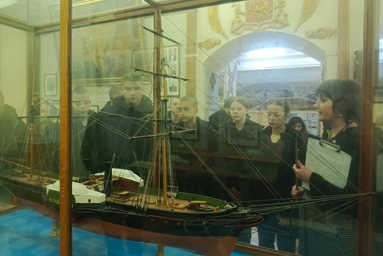 Для кадетов в музее были организованы экскурсия и лекция, посвященные паровым кораблям. Экскурсовод в зале № 1 основной экспозиции подробно рассказала курсантам о первом бое паровых кораблей в мировой истории. Этоn бой состоялся в ходе Русско-турецкой войны 5 ноября 1853 года. В бою сошлись 10-пушечный турецкий пароход "Перваз-Бахри" ("Владыка морей") и 11-пушечный русский пароходофрегат "Владимир".