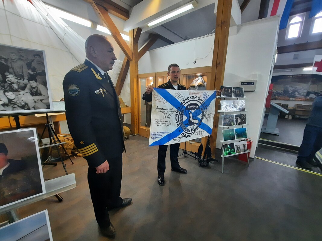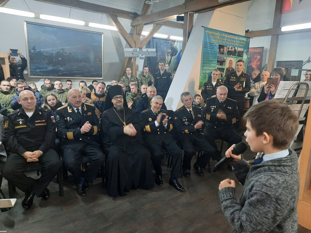 Особенно символичным стал момент передачи в фонды музея боевой реликвии. Капитан 2 ранга Е.В. Масликов, участник СВО, передал флаг воинской части 43104 с автографами непосредственных участников боевых действий. Этот артефакт станет важным свидетельством современной истории флота и доблести его защитников.