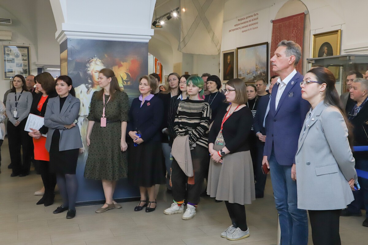Первыми посетителями выставки стали участники церемонии, для которых авторскую экскурсию провела второй куратор проекта, заведующая Специальным фондом ЦВММ Василина Трубилко. Она рассказала, как морская мощь создавалась не только доблестью моряков, но и титаническими усилиями государства, финансистов, промышленников и простых граждан, вкладывавших средства в развитие флота.