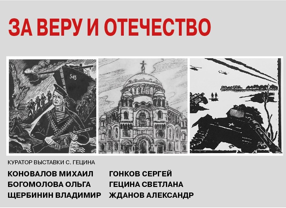 На втором уровне атриума Центрального военно-морского музея имени императора Петра Великого начала работу художественная выставка «За Веру и Отечество». Экспозиция подготовлена творческим объединением «Московский эстамп» при кураторстве члена правления объединения Светланы Гециной.