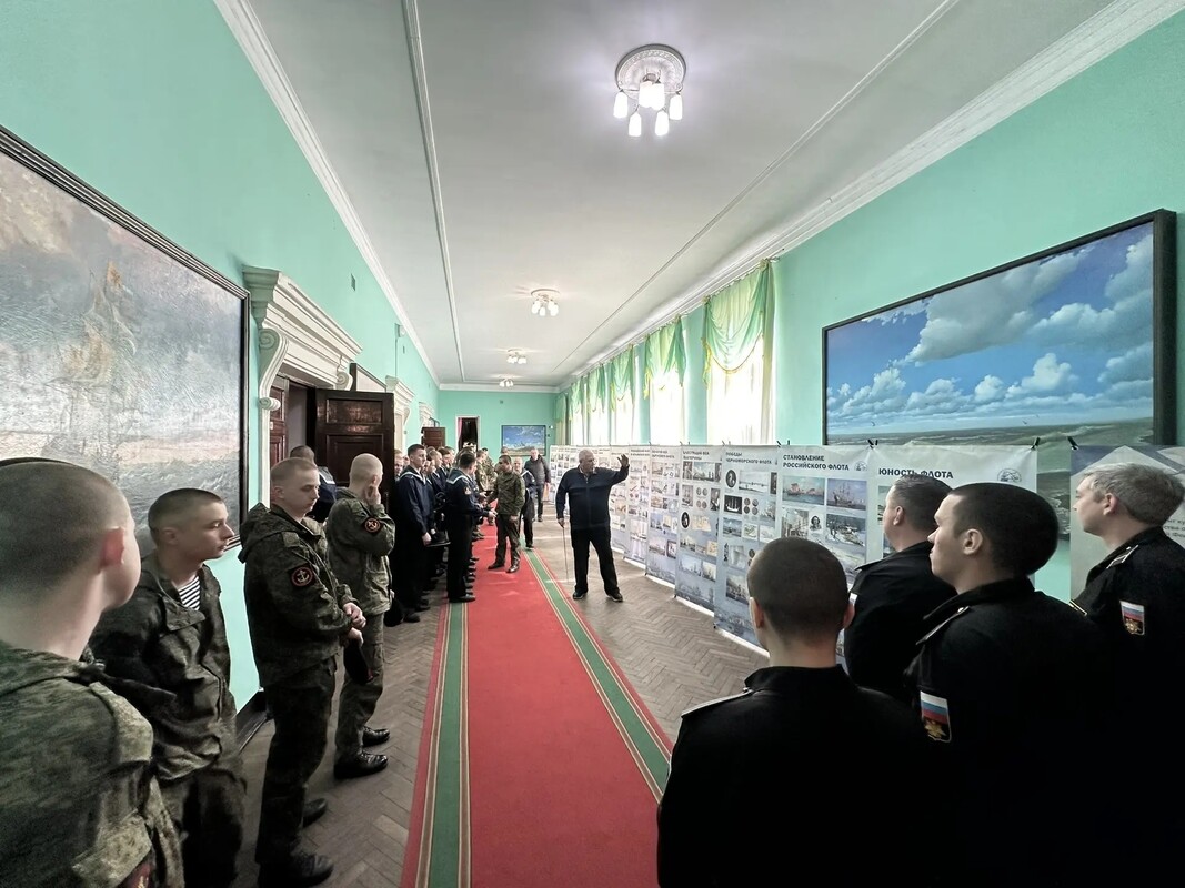 Для личного состава Балтийского флота младший научный сотрудник филиала Н.В. Жуков провёл увлекательную и познавательную экскурсию. Он рассказал защитникам Отечества об основных этапах становления и развития ВМФ России, славных победах и великих флотоводцах, чьи традиции сегодня продолжает новое поколение моряков.
