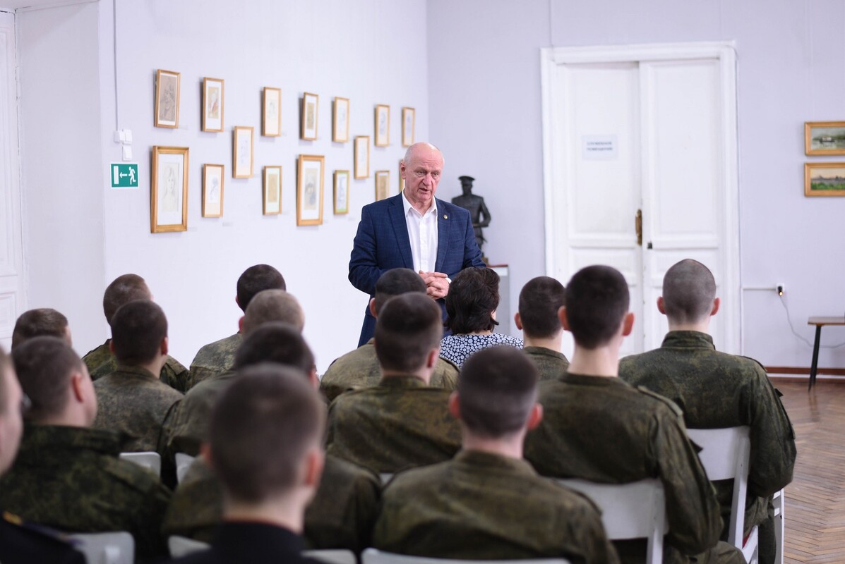 Перед концертом к зрителям с приветственным словом обратился заведующий филиалом "Кронштадтская крепость" ФГБУ "ЦВММ" Минобороны России Александр Тарапон и заместитель командира Ленинградской военно-морской базы, капитан 1 ранга Евгений Валыка.