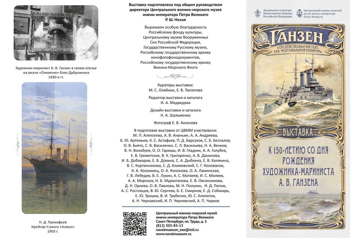 Экспозиция раскрывает творческий путь Алексея Васильевича Ганзена,официального живописца Морского министерства – внука великого Ивана Айвазовского.